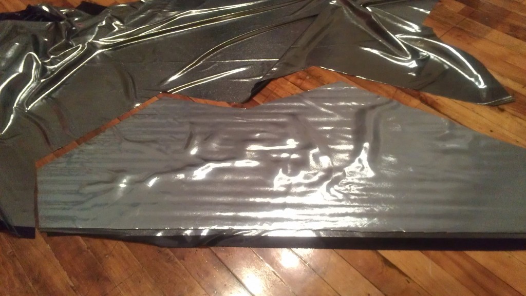 The catch to this project was this: we had no idea who the guys were, just that they would be bodybuilders. Our best guess was that they would be shaped approximately like Launchpad McQuack, with shoulders out to here and no waist to speak of. We guessed 30″-34″ish. As the prototype was a little tight on Carlos, I figured I’d make the next three several inches bigger, then bring my sewing machines and be prepared to take them in.