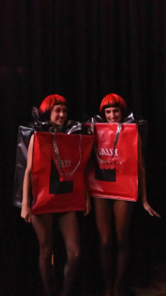 There were a lot of great shots, but the lighting was pretty much impossible. Here, you can see the two matching bags in the reflection. They’re hanging out not in their shopping bag costumes, but I still like calling them bags, as they aren’t girls who are likely to get called that very much: