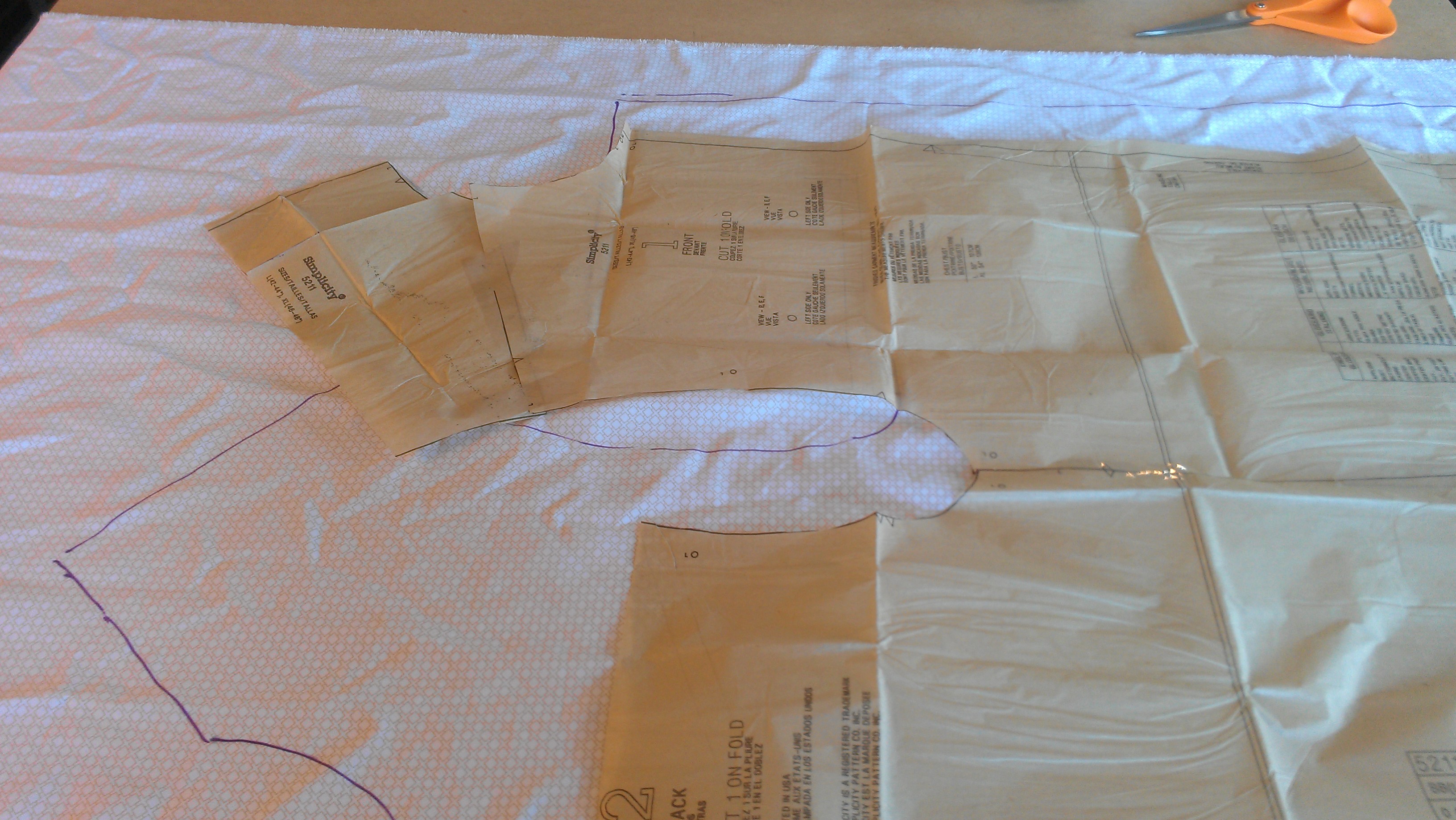 I moved all the seams on the shirt and pants to the back. Starting with a commercial pattern for a loose tunic, I cut up the original pattern and taped the pieces together in a different order.
